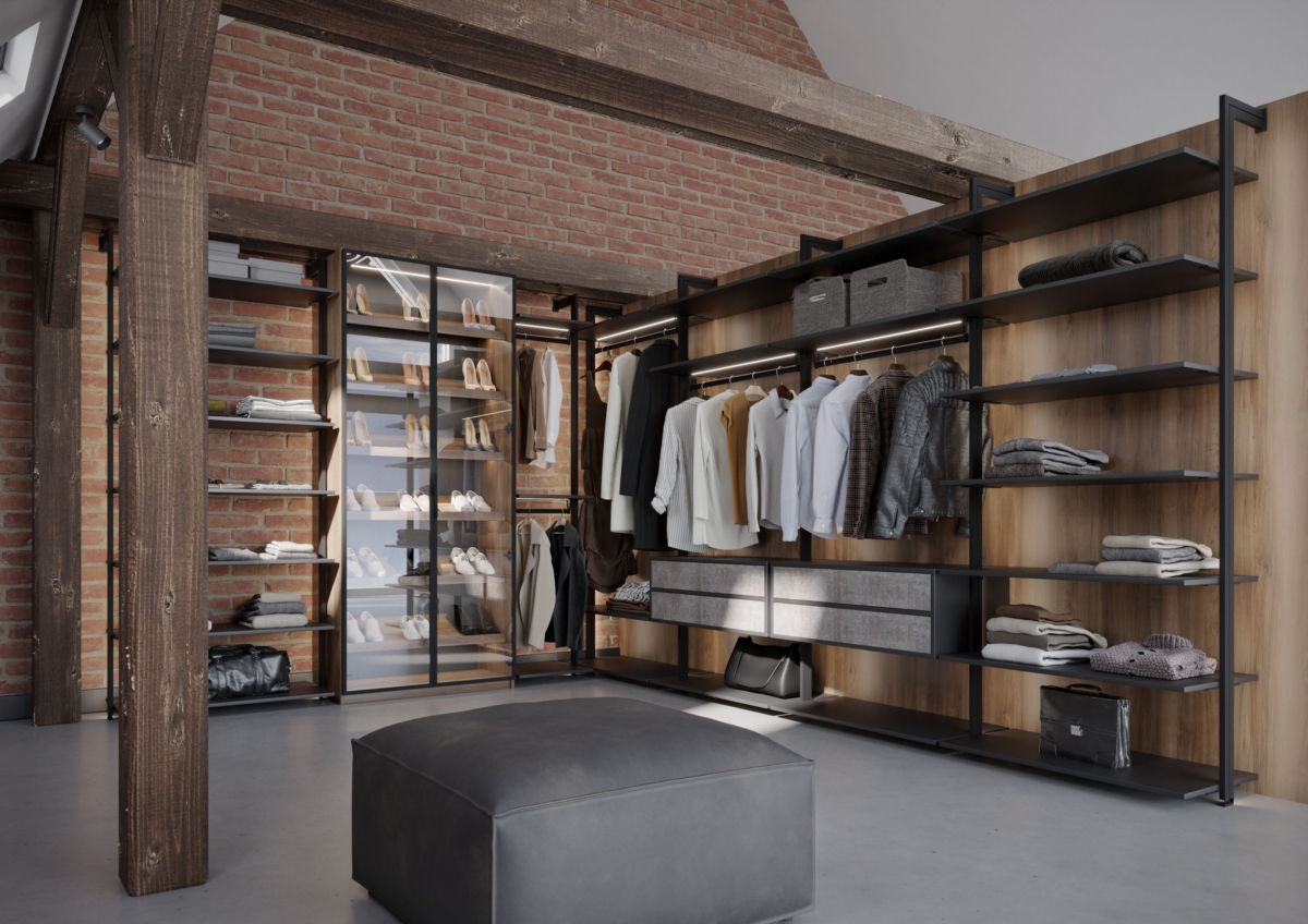 Tego typu garderoba najlepiej sprawdzi się, gdy dysponujesz przestronnym pokojem lub wydzieloną częścią sypialni.