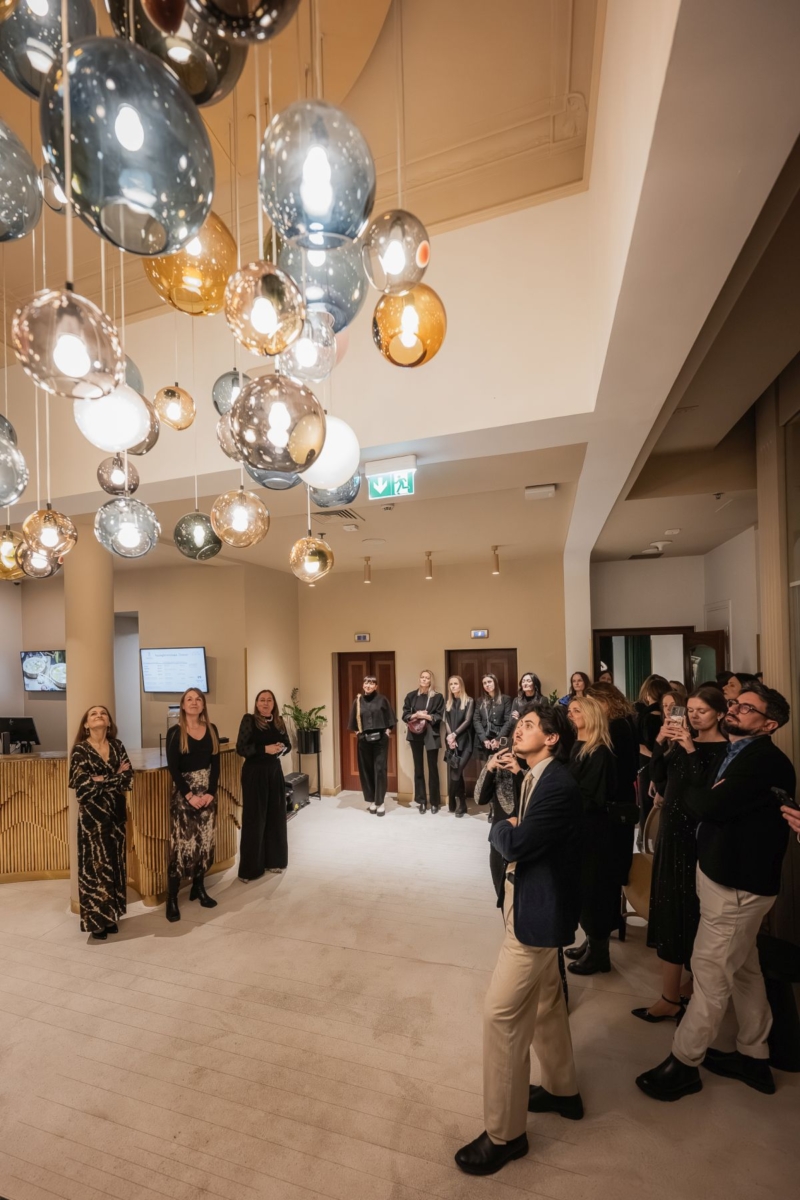 Wszelkie detale, kolorystyka czy tekstury materiałów, zostały dobrane w myśl tej snutej językiem architektury opowieści. Dla przykładu, wykładzinę w korytarzach zdobi przekształcony wzór z fotografii molo w Sopocie, zagłówki w pokojach układem materiału mają przypominać rozwiany wiatrem piasek nad Bałtykiem, a lampy w lobby, przypominające bursztyny, przywodzą na myśl morskie skarby wyrzucane na brzeg. Wszystkie te inspiracje przybliżyły zgromadzonym gościom Diana Zakrzewska, architektka z pracowni Tremend oraz Edyta Barańska, ceniona projektantka szklanych obiektów dekoracyjnych i autorka widowiskowego, wykonanego na specjalne zamówienie żyrandola, który oglądać można w przestrzeni Rezydent Sopot – MGallery Collection. Opowieści towarzyszyło wystąpienie projektantki Anny Orskiej, której kontekstem było otwarcie nowego butiku marki Orska w Gdańsku.