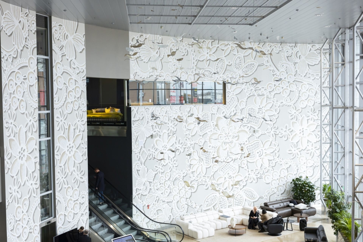 DOMOTEKA to jedno z najważniejszych miejsc na mapie Warszawy dedykowanych aranżacji wnętrz, oferujące szeroki wybór marek i rozwiązań dla domu. Od lat przyciąga zarówno klientów indywidualnych, jak i architektów oraz projektantów, zapewniając kompleksowe wsparcie w tworzeniu estetycznych przestrzeni. Coraz większą rolę odgrywają tu także działania artystyczne, takie jak realizacja muralu NeSpoon czy instalacja Birds Edyty Barańskiej, dzięki którym sztuka staje się naturalnym uzupełnieniem bogatej oferty wyposażenia wnętrz.