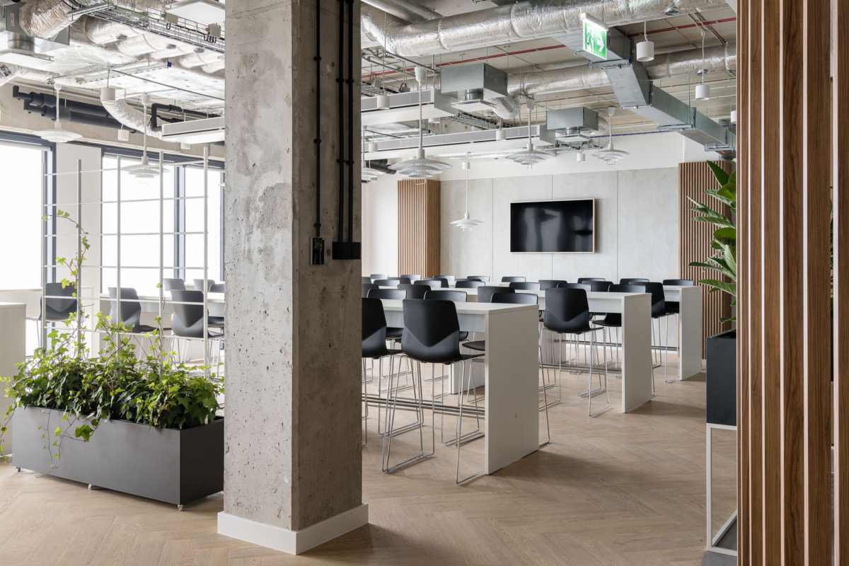 Elastyczność staje się wymogiem rynkowym, a nie opcją. Inwestorzy i najemcy oczekują przestrzeni łatwych do reorganizacji, z mobilnymi ścianami, modułowymi meblami i zintegrowanymi systemami oświetleniowymi. Takie rozwiązania pozwalają w szybki sposób przekształcać przestrzenie robocze w strefy eventowe, szkoleniowe lub ekspozycyjne. Grzelecki podkreśla, że umiejętność łączenia funkcji, na przykład przestrzeni kreatywnej z prezentacyjną, w pobliżu stref socjalnych, staje się wyróżnikiem nowoczesnych biur, które chcą przyciągać pracowników i wspierać kulturę organizacyjną.