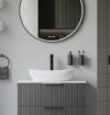 Czarna kolorystyka nie jest idealnym sposobem na aranżację małej łazienki, ale zdecydowanie może być użyta, w oryginalny sposób, w większym pomieszczeniu. Czarna, wolnostojąca wanna doda luksusowego charakteru – szczególnie w zestawieniu z monochromatycznymi płytkami. Wyrazista, czarna umywalka może idealnie dopełnić szare lub drewniane akcenty meblowe, a czarne baterie prysznicowe lub umywalkowe wprowadzą alternatywny akcent i dopełnią aranżację.