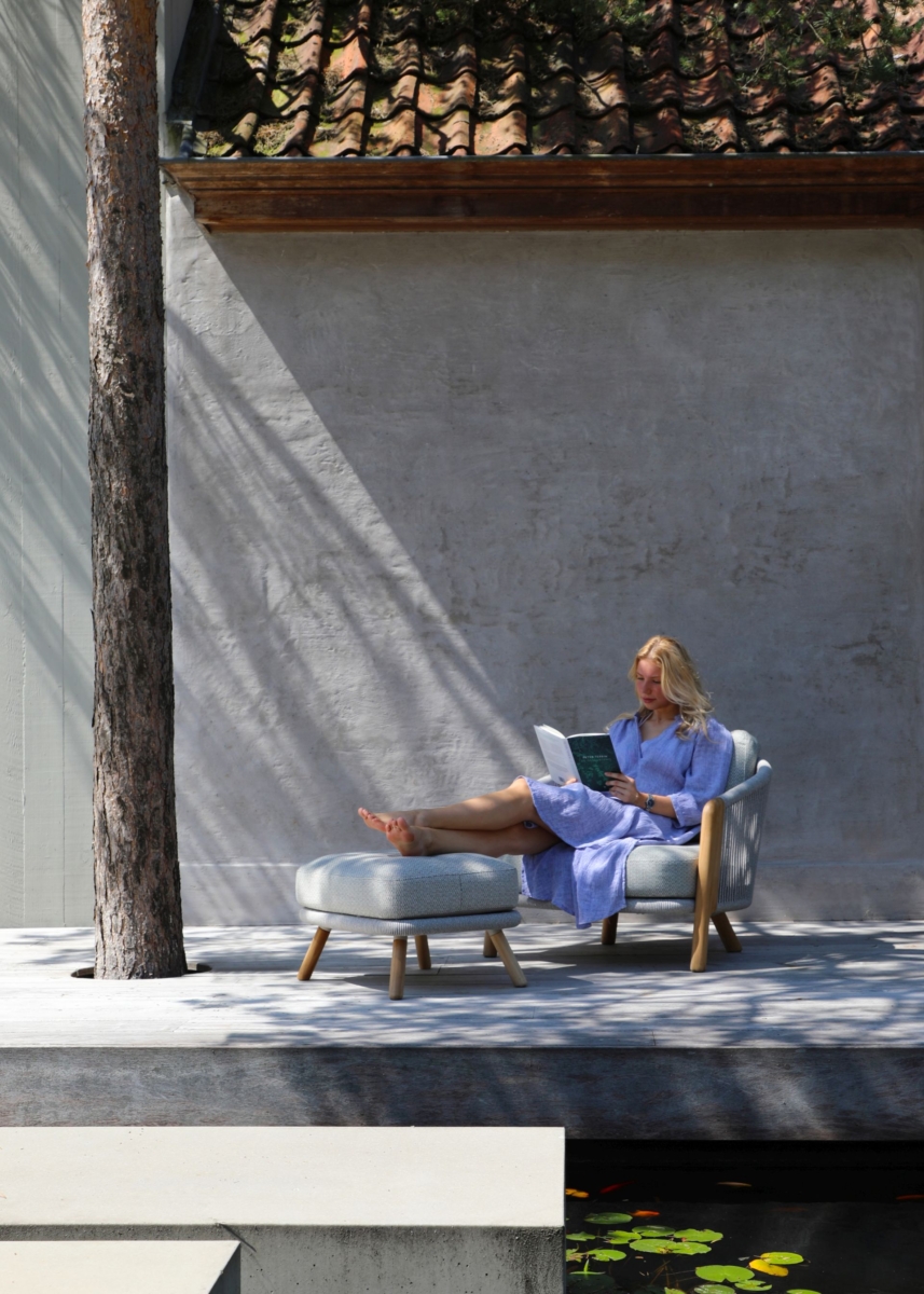 Zamiast wyłącznie drewna teakowego, łączymy pod gołym niebem znacznie szerszą gamę materiałów. W dużej mierze jest to zasługa nowych technologii, które pozwalają bezpiecznie stosować rozmaite wykończenia i tkaniny na zewnątrz. Wybór materiałów koncentruje się obecnie na strukturze i zrównoważonym rozwoju. Na pierwszy plan wysuną się surowy kamień, drewno z odzysku czy wykończenia z lin i sznurków. Renesans przeżywa też poczciwa wiklina, znana z baciowych foteli, rattan i obłe linie stołów, sof oraz foteli.