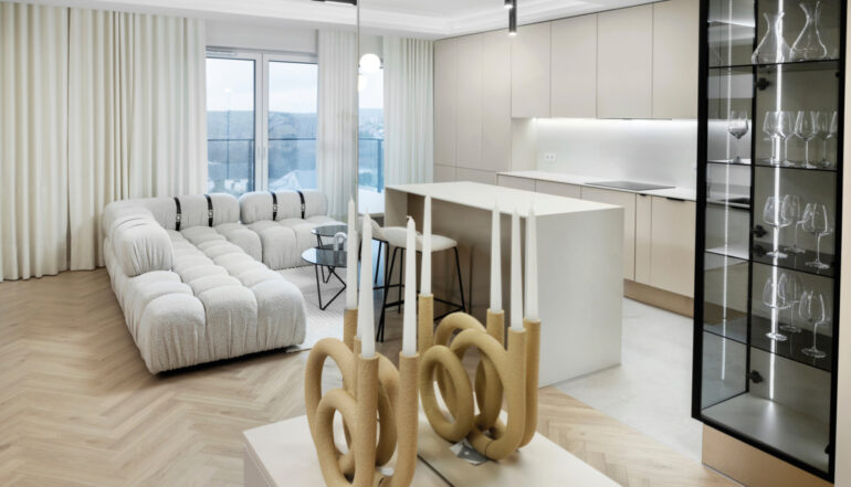 Wnętrze mieszkania zaprojektowane przez Pracownię Projektowania Wnętrz Pokojowo w Kielcach jest doskonałym przykładem nowoczesnej elegancji i funkcjonalności. 60-metrowe mieszkanie zostało zaaranżowane w modnym trendzie beżowo-kaszmirowym, co nadaje mu przytulny, harmonijny charakter. Cała przestrzeń łączy minimalistyczną estetykę z luksusowymi...