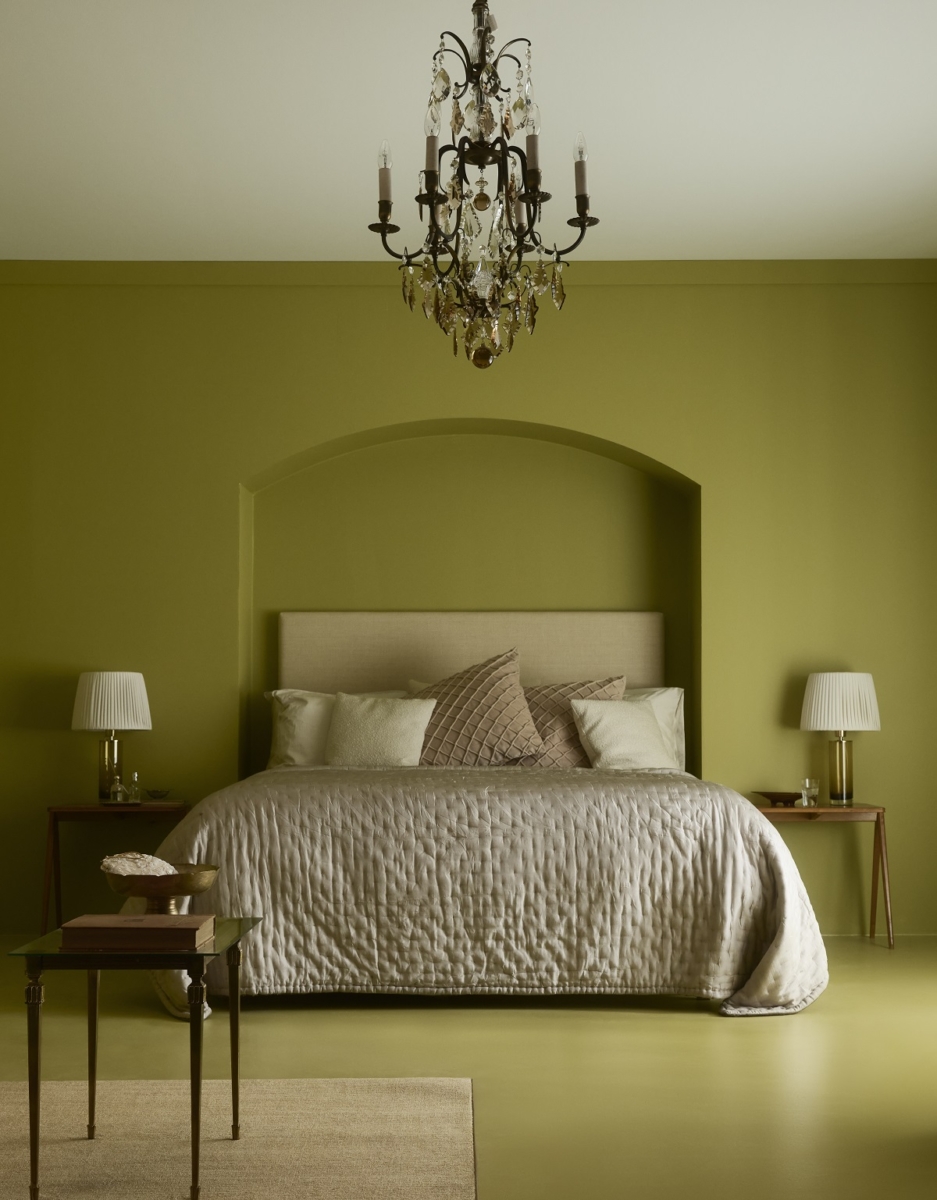 L391 Chameleon w dziennym świetle ujawnia oliwkowe tony, które dodają pomieszczeniom świeżości. Wieczorem rozkwita złotawym akcentem, miękko otulając przestrzeń. Harmonijnie współgra z neutralnymi barwami i naturalnymi fakturami, tworząc atmosferę przytulności. To kolor, który dodaje energii i harmonii. Połączony z metalem czy szkłem, wprowadza do wnętrza nutę luksusu.