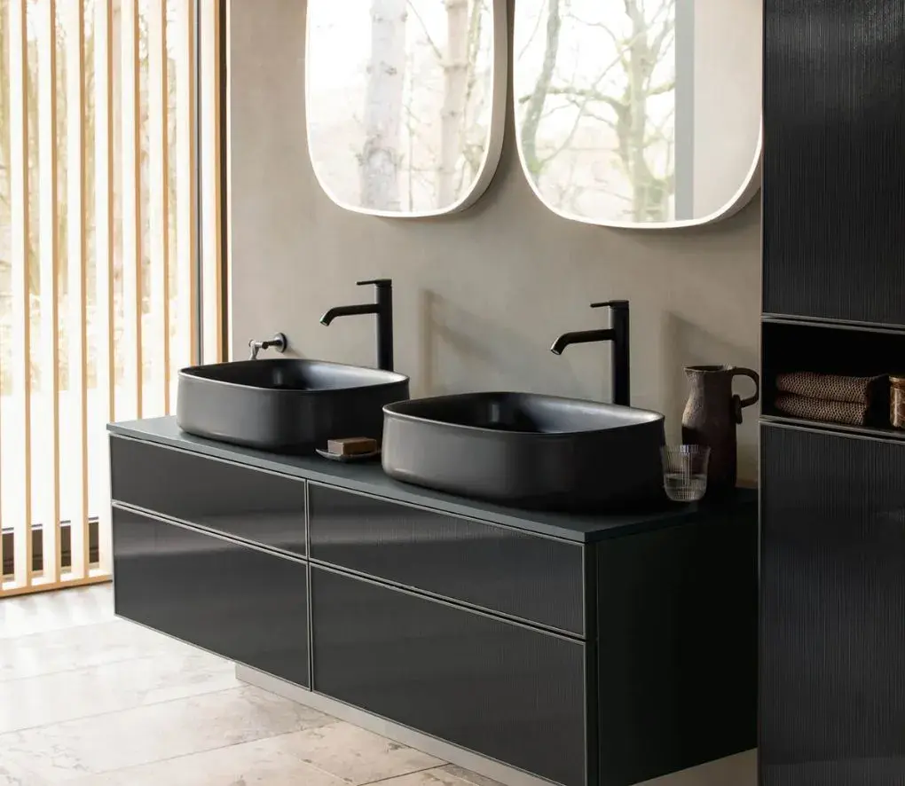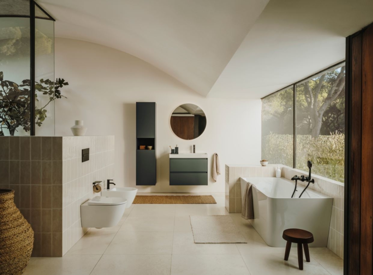 • Łagodzenie Formy: Miękkie, organiczne kształty ceramiki, takie jak te w kolekcji Zencha (Duravit) , stają się niezbędnym elementem łagodzącym geometryczne bryły, wprowadzając subtelność i harmonię inspirowaną naturą.