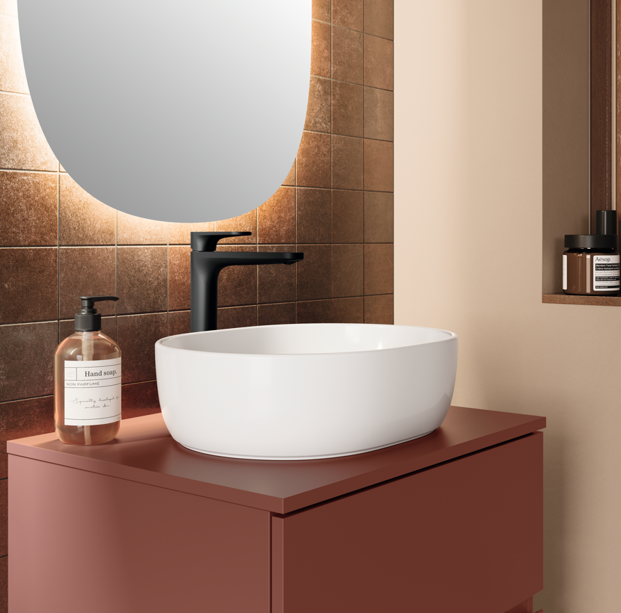 Na tym tle kolekcja Geberit Caluna dopowiada historię o naturalnej równowadze w nowoczesnym wydaniu. Jej umywalki o czystych, organicznych formach subtelnie porządkują przestrzeń, nie dominując jej. Delikatne proporcje, smukłe linie i możliwość wyboru modeli nablatowych lub meblowych pozwalają dopasować je do różnych aranżacji, od drewna i matowej czerni po betonowe akcenty. Caluna wprowadza do wnętrza rodzaj spokojnej lekkości, dzięki której łazienka staje się harmonijną, wyciszoną przestrzenią.