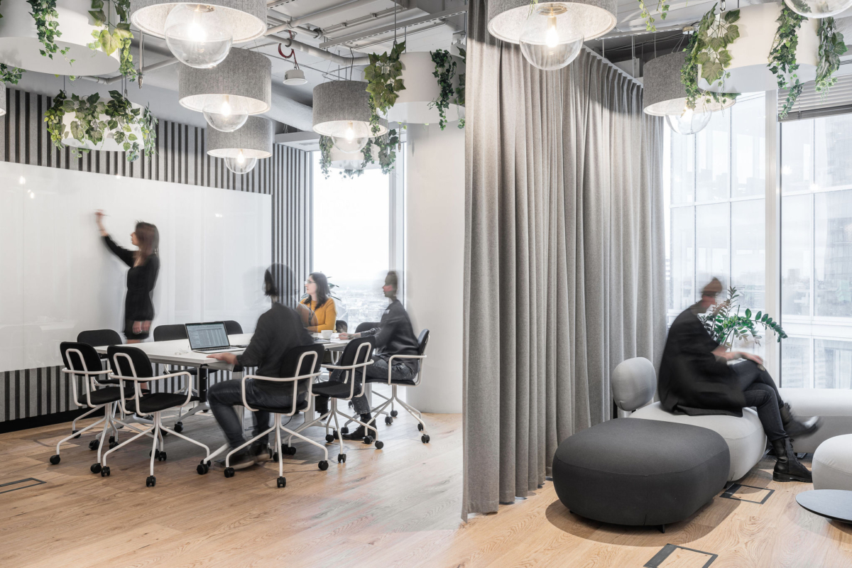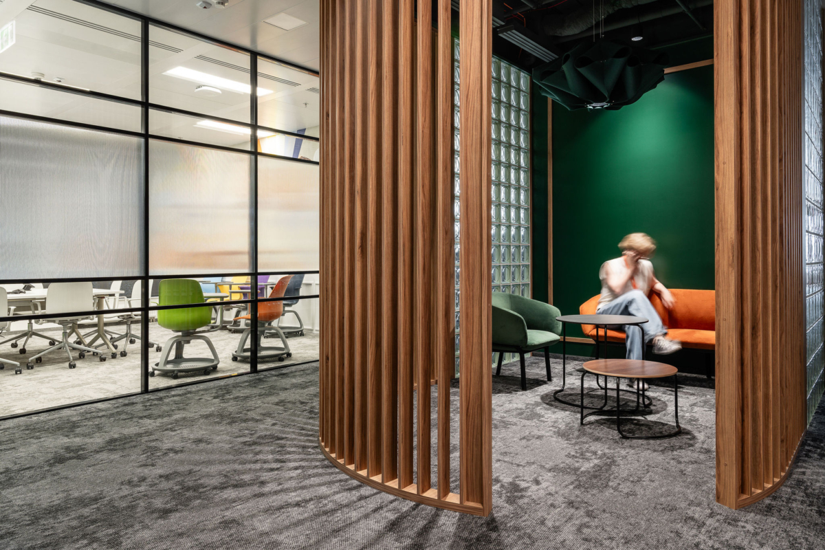 – Projektowanie biur w duchu wellbeing oznacza, że każda decyzja – od rozmieszczenia stanowisk, przez rodzaj materiałów, po kształt stref wspólnych – jest podejmowana z myślą o człowieku. Biuro nie powinno zmuszać pracowników do adaptacji do przestrzeni, lecz umożliwiać im naturalną i komfortową pracę, regenerację oraz współpracę. – mówi Barnaba Grzelecki, architekt, właściciel pracowni BIT CREATIVE, specjalizującej się w projektowaniu przestrzeni biurowych. – W projektach duży nacisk kładziemy na elastyczność przestrzeni. Dzięki przemyślanym strefom do pracy indywidualnej, zespołowej i regeneracyjno-socjalnej, pracownicy mają możliwość wyboru środowiska dostosowanego do aktualnych zadań. To z kolei przekłada się na lepsze skupienie, efektywność i satysfakcję z pracy.