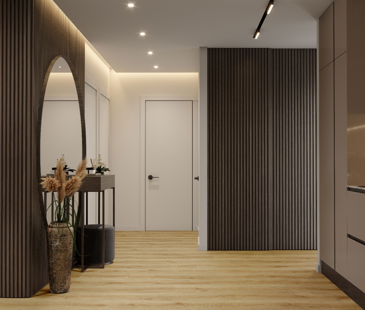 Panele VIN IN doskonale wpisują się również w nowoczesne, minimalistyczne wnętrza, gdzie duże, jednolite powierzchnie pomagają uporządkować przestrzeń i nadać jej elegancki charakter.