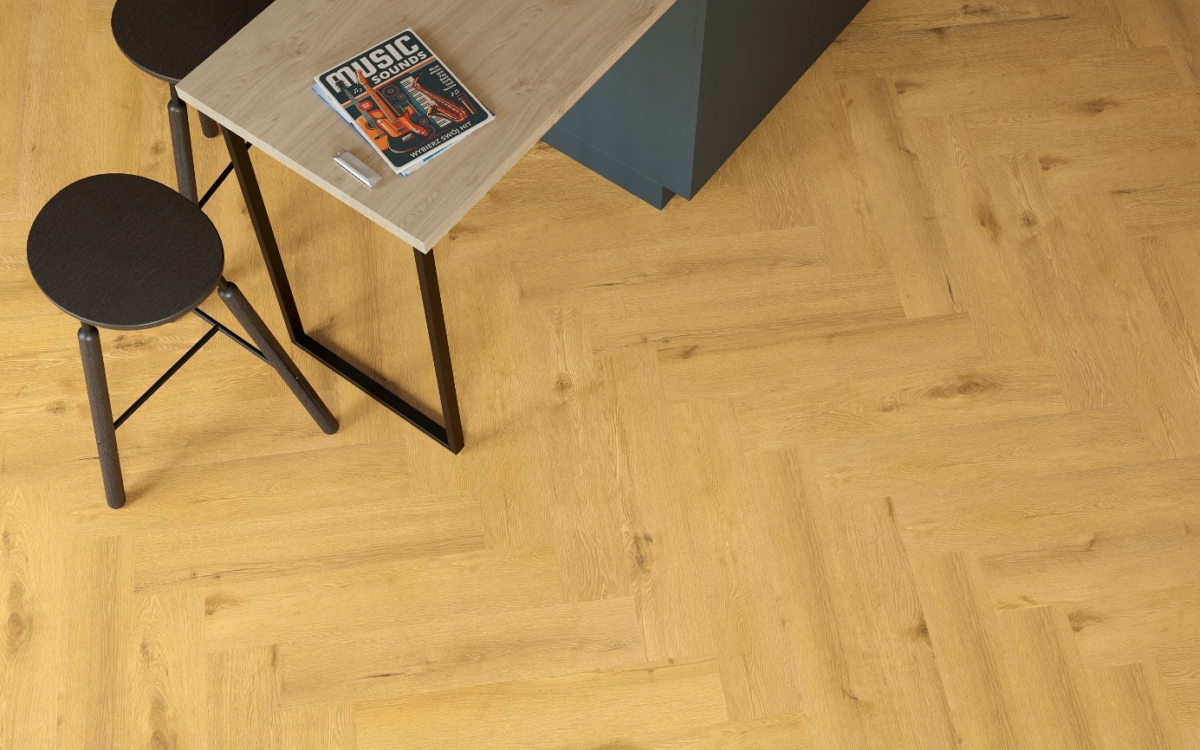• Miłośnicy klasyki mogą wybrać wzory układane w jodełkę, dostępne w kolekcjach Blues Herringbone lub Rock Herringbone. To ponadczasowe rozwiązanie nawiązujące do elegancji tradycyjnych parkietów, odpowiednie zarówno do dużych, jak i mniejszych przestrzeni.